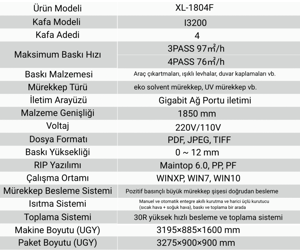 Compass Reklam güvencesiyle sunulan bu dijital baskı makinesi, yüksek çözünürlük, hız ve uzun ömürlü kullanım sunan profesyonel bir baskı çözümüdür. Özellikle eco solvent ve UV baskı uygulamaları için geliştirilmiş olan bu model; endüstriyel kullanım için gereken tüm akıllı sistemlerle donatılmıştır.
